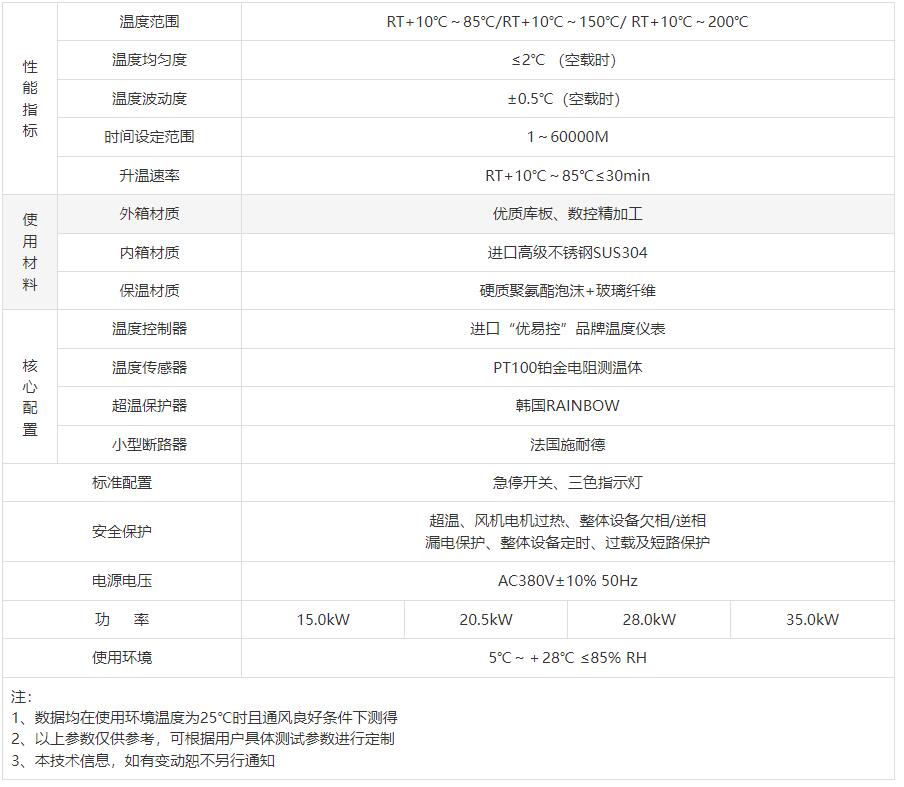 溫度范圍 RT+10℃~85℃/RT+10℃~150℃/ RT+10℃~200℃