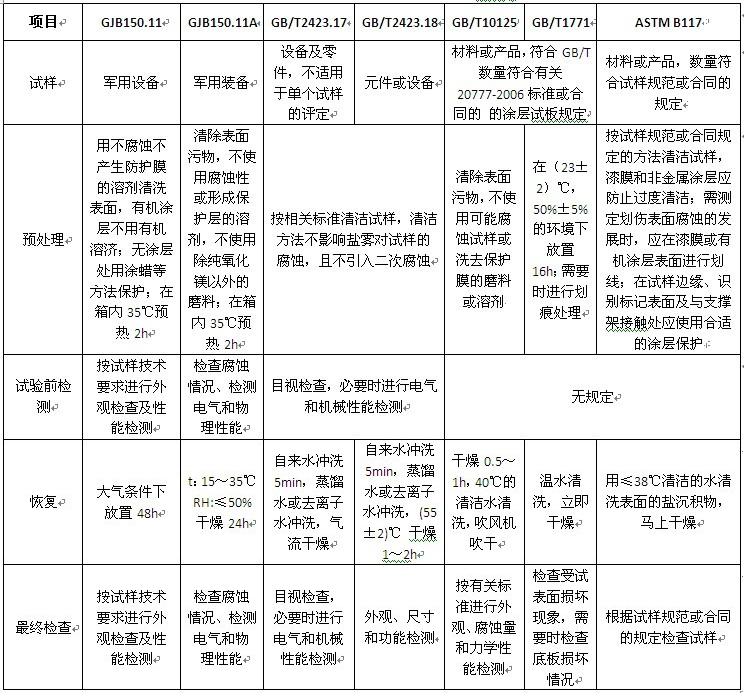 鹽霧試驗箱的試樣主要有試片(試板)和產品(含零部件、元器件)兩類。各種標準對試樣的種類有不同的規(guī)定,對試樣的數(shù)量一般沒有具體規(guī)定,詳細要求見下表: