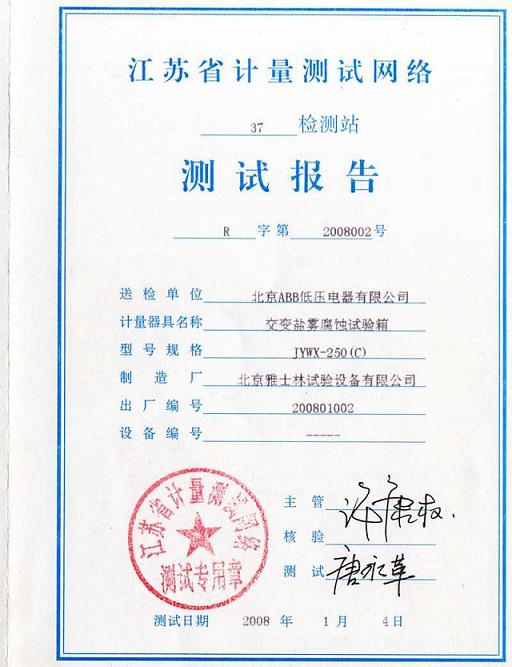 >>鹽霧腐蝕試驗(yàn)箱測(cè)試報(bào)告-江蘇計(jì)量院-ABB集團(tuán)