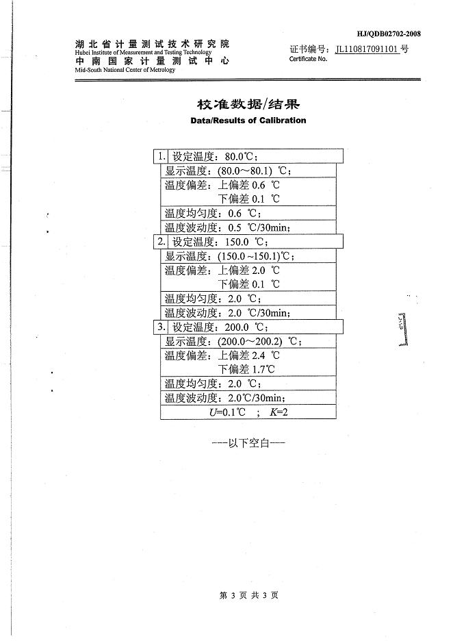 高溫試驗箱校準(zhǔn)證書-湖北計量院-邦迪集團