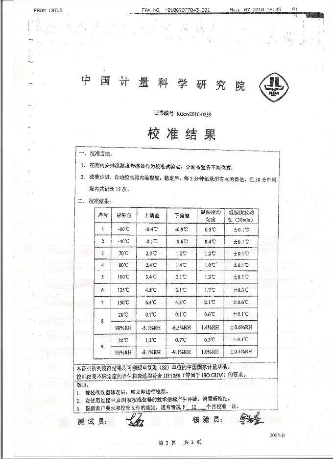 高低溫濕熱試驗(yàn)箱校準(zhǔn)證書-中國(guó)計(jì)量院-國(guó)家雷電測(cè)試