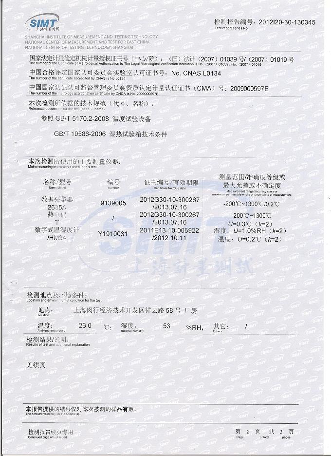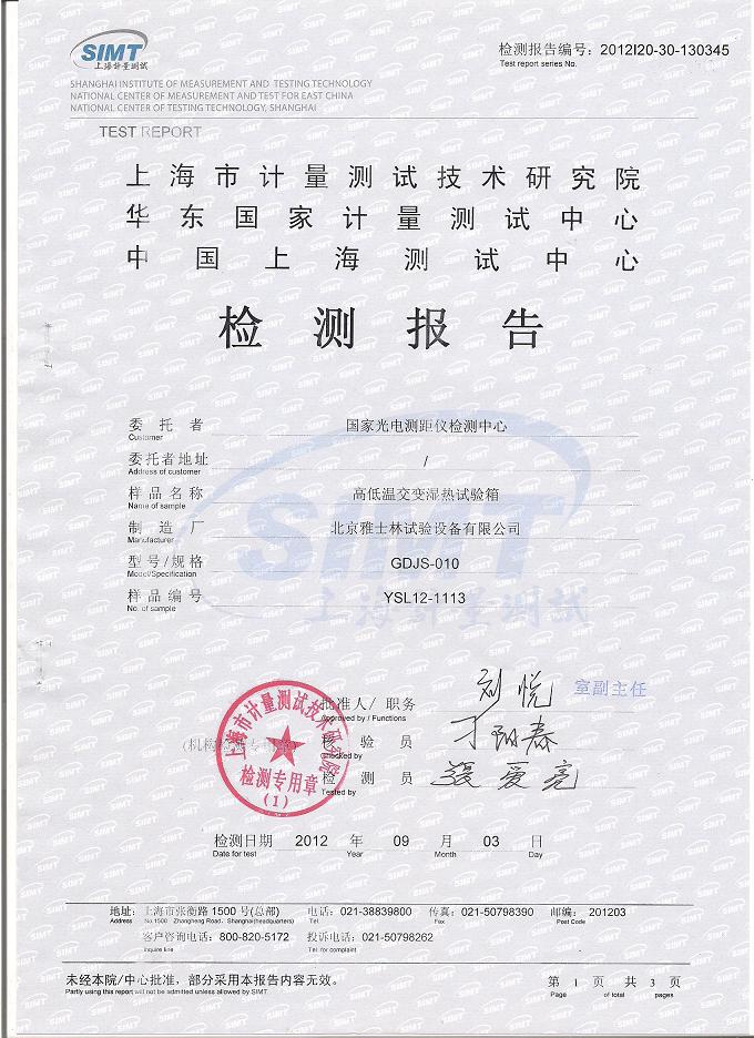 >>高低溫交變濕熱試驗(yàn)箱檢測報(bào)告-上海計(jì)量院-國家光電檢測