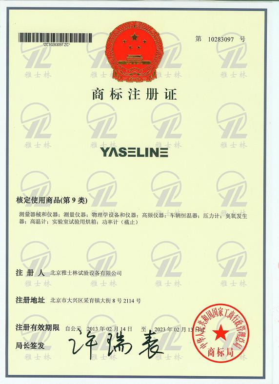 近日,北京雅士林試驗(yàn)設(shè)備有限公司(以下簡(jiǎn)稱“雅士林儀器”)注冊(cè)的“YASELINE”英文商標(biāo),獲得國(guó)家工商行政管理總局商標(biāo)局注冊(cè)通過。此次注冊(cè)通過的“YASELINE”商標(biāo)為雅士林儀器近年來全力打造高端試驗(yàn)箱品牌。 多年來,雅士林儀器堅(jiān)持貫徹品牌戰(zhàn)略,進(jìn)行全方位的市場(chǎng)開拓,全力打造“雅士林試驗(yàn)箱”高端品牌。雅士林儀器實(shí)施以品牌求發(fā)展的品牌經(jīng)營(yíng)戰(zhàn)略,本著“品質(zhì)卓越,盡善盡美”的質(zhì)量理念,強(qiáng)化員工素質(zhì),加強(qiáng)服務(wù)流程的完善和服務(wù)技能的提升,建立以顧客為導(dǎo)向的服務(wù)系統(tǒng)和服務(wù)標(biāo)準(zhǔn)。注重產(chǎn)品技術(shù)創(chuàng)新,追求高品質(zhì)的產(chǎn)品研發(fā),截至目前公司共獲得國(guó)家發(fā)明、實(shí)用新型與外觀專利多項(xiàng),引領(lǐng)了國(guó)內(nèi)環(huán)境試驗(yàn)設(shè)備行業(yè)技術(shù)創(chuàng)新的高度,廣大用戶對(duì)“雅士林試驗(yàn)箱”品牌信賴有加,市場(chǎng)占有率逐年提高。 YASELINE商標(biāo)的取得,一方面有利于公司加強(qiáng)對(duì)品牌及注冊(cè)商標(biāo)的保護(hù),是對(duì)雅士林儀器品質(zhì)實(shí)力、品牌價(jià)值、品牌建設(shè)成果的肯定,也是對(duì)雅士林儀器資產(chǎn)規(guī)模、市場(chǎng)占有率、品牌影響力、社會(huì)口碑等綜合實(shí)力的高度肯定;另一方面對(duì)于提高公司品牌和市場(chǎng)知名度,打造高端環(huán)試品牌,開拓國(guó)際市場(chǎng)等具有積極意義。